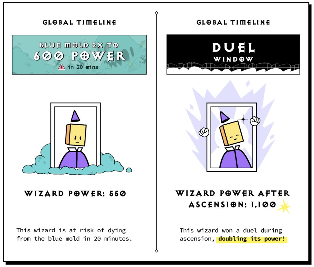 - 青カビのパワーより低いウィザードのみ昇天を使える。
