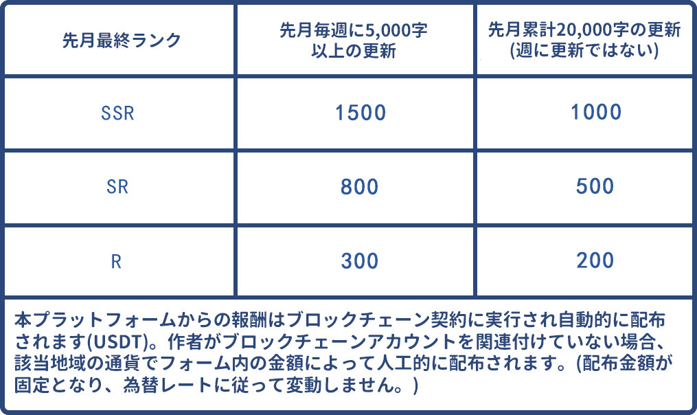 ※下記のすべての字数は作品を掲載した字数です。毎月5日前に先月の収入を配布されます。毎月の配布内容は:基本給+ギフト+ボーナス(ボーナスがない場合があります)