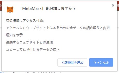 画像で指定しているCHROMEに追加をクリックすることで完了です。これでChromeの拡張機能にメタマスクが追加されました。