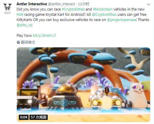 Antler Interactiveは公式ツイートで、「Androidの新しいARレーシングゲーム<Krystal Kart>でCryptoKittiesとブロックチェーン車で競うことができることを知っていますか?すべての<CryptoKitties>ユーザーは、KittyKartsを無料で入手できます。または、あなたは専属の車を購入してprojectopenseaコンテストを参加することができます!」と言いました。
