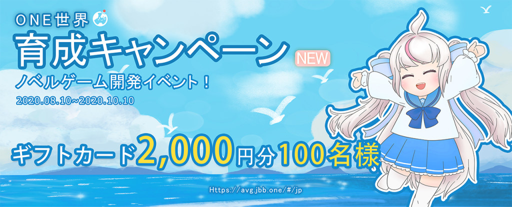 期間中、ONE世界の開発ツールを利用してノベルゲームを開発する限り、BBCコイン報酬も限定バッジも、さらに2000円ギフトカードをプレゼント!