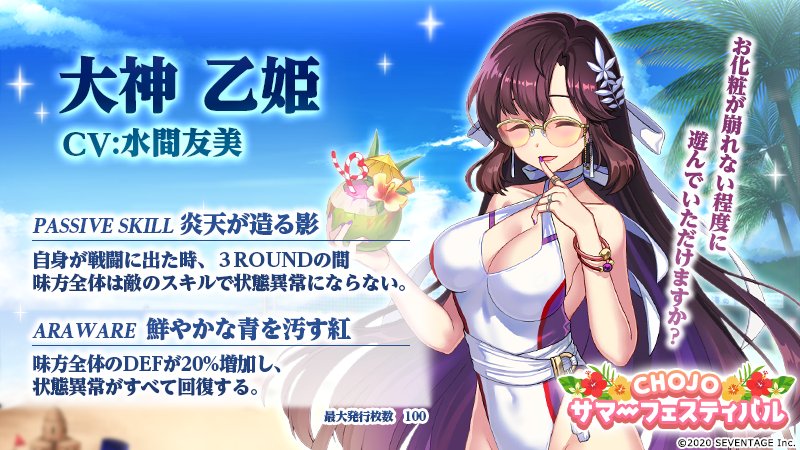 味方全体のDEFが20%増加し、状態異常が全て回復する。最大発行枚数 100