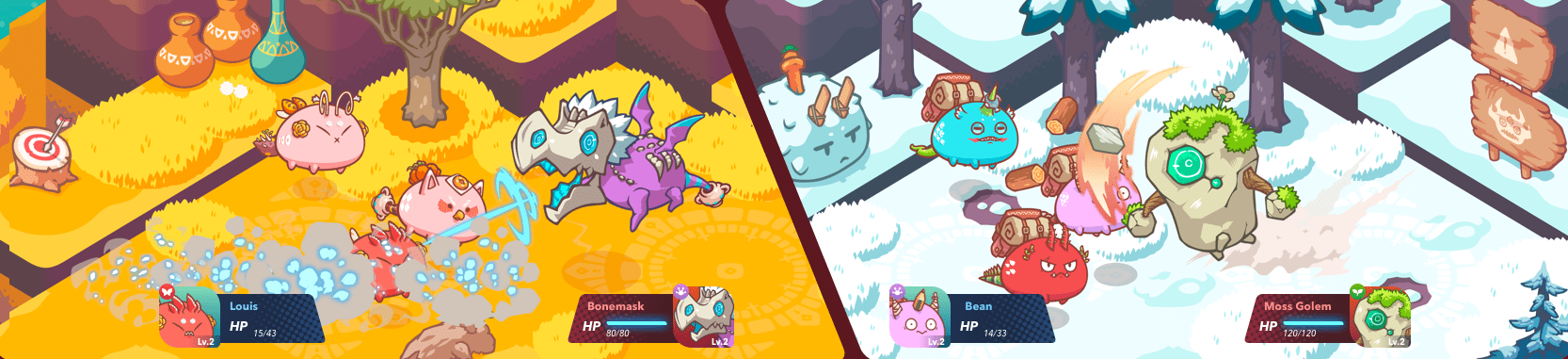 <Axie Infiniry>はEthereumに基づいて開発した、ブロックチェーンでAxieというファンタジー生き物を集めて飼うゲームです、プレイヤー同士は取引、対戦などのことができ、挑戦できるダンジョンもあります。Axieは全体的に言ったら、角や尻尾や小さな足を持っている団子に似ています。いくつかのAxieは、猫、犬、魚、鳥など、現実の世界でよく知られているペットの特徴を持っています。さらにファンタジーな外観になるAxieもあります、例えばドラゴン、海の怪物、移動できいる木或いはもっと不思議の姿です。これらの外観の特徴もまた組み合わせることができます。