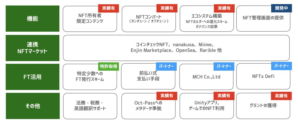 法務・税務・英語翻訳サポート / Oct-Passへのメタデータ準拠 / Unityアプリ, ゲームでのNFT利用 / グラントの獲得