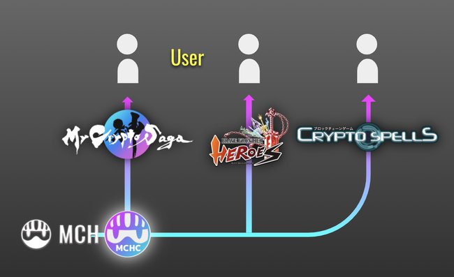 各ゲームタイトルのユーザーは獲得したMCHCはNFTとの交換に用いることができるようになり、交換に使用されたMCHCの一部は、再び該当ゲームタイトルの協賛分として割り当てます。