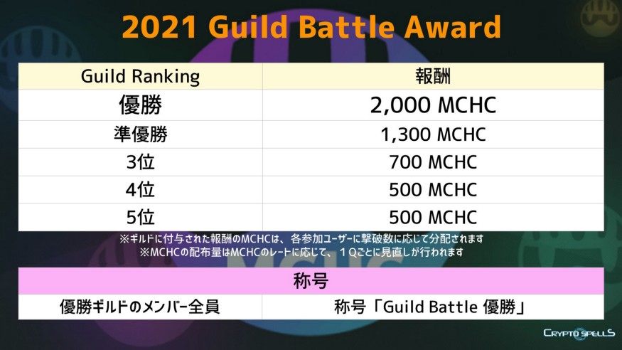 クリプトスペルズ、2021年5月以降のギルドバトル報酬がMCHCになります。