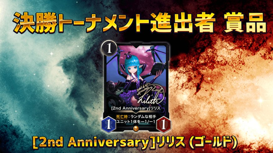 ゴールド級とレジェンド級の決勝トーナメント出場者の中から優勝者を予想して、[2nd Anniversary]リリス(ゴールド)を手に入れましょう!
