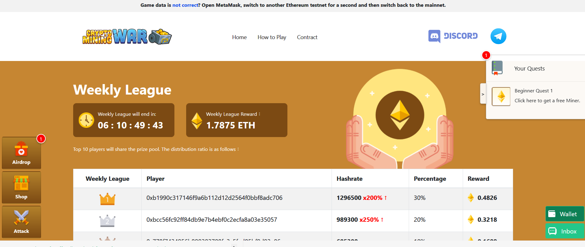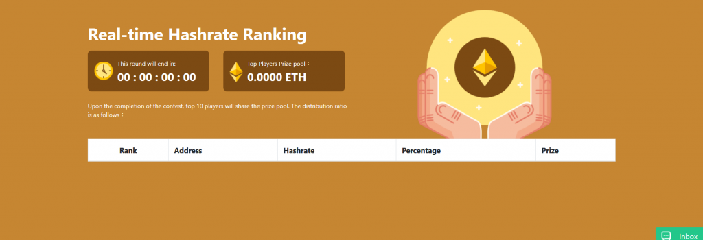 - ハッシュレートが最も高い上位10人のプレイヤーのうちの1人がETH報酬に割り当てられます。(通常、10000クリスタル/日以上は、あなたはトップ10に達することができます。)