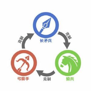 戦争をより戦略的かつ現実的にするために、ゲームではまた陣形と兵種の相克関係も導入しました。このゲームには、騎兵、弓兵、槍兵の3種類の兵士がいます。相克関係は下記のようです。