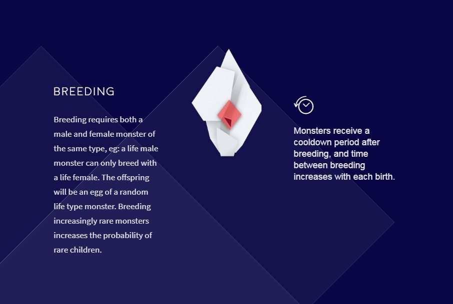 繁殖或いは市場からモンスターの卵を購入することでモンスターを集めます。モンスターの卵は孵化するのに短い時間しか必要ありません。