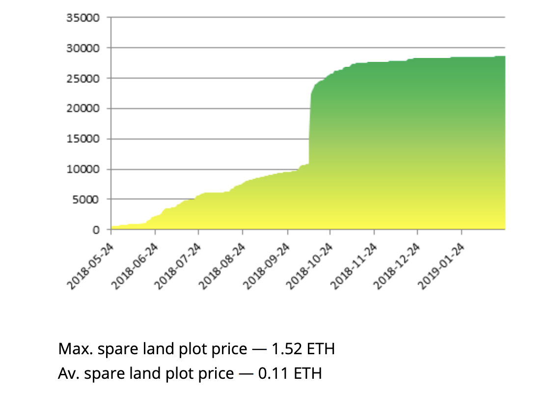 DappRadarからの統計データによって、2018年10月の取引量の激増に伴い、購入する土地の量も増えています。