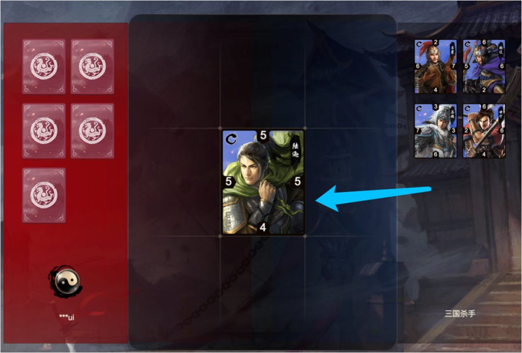 <三国トリプルトライアド>はプレイヤーとプレイヤーが1対1のバトルモードです。システムがランダムで対戦の両方をマッチして先手順番を決めます、プレイヤーはそれぞれ5枚のカードを出して今回のバトルを参加する必要があります。対戦場所は3×3グリッドに表示されています。