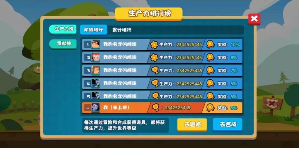 プレイヤーは食料を持てば外で冒険できて、モンスターと戦って、それによって最初の資源と生産力をもらいます。そして新しいアイテムを開発することをサポートできて、それによって貢献値を獲得します。生産力と貢献値も世界ランキングに記録されて、それからいくつの利益をもらえます。