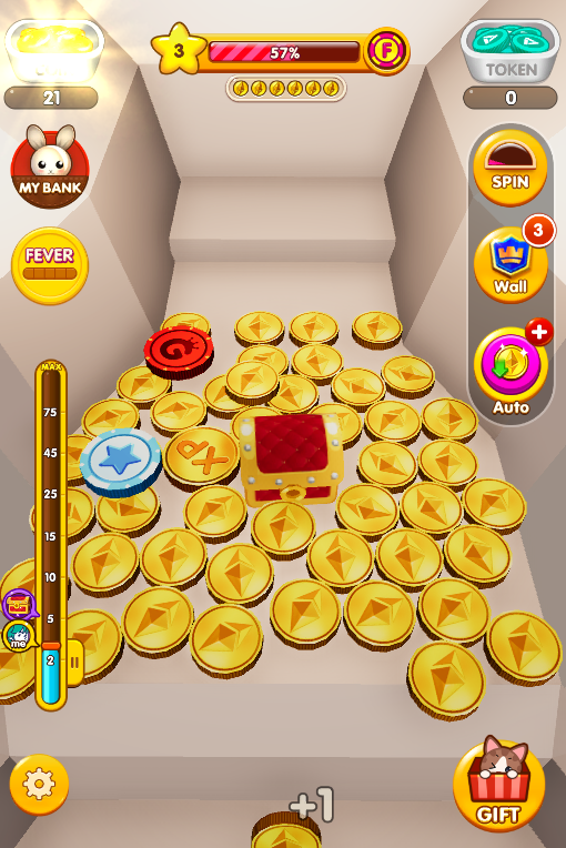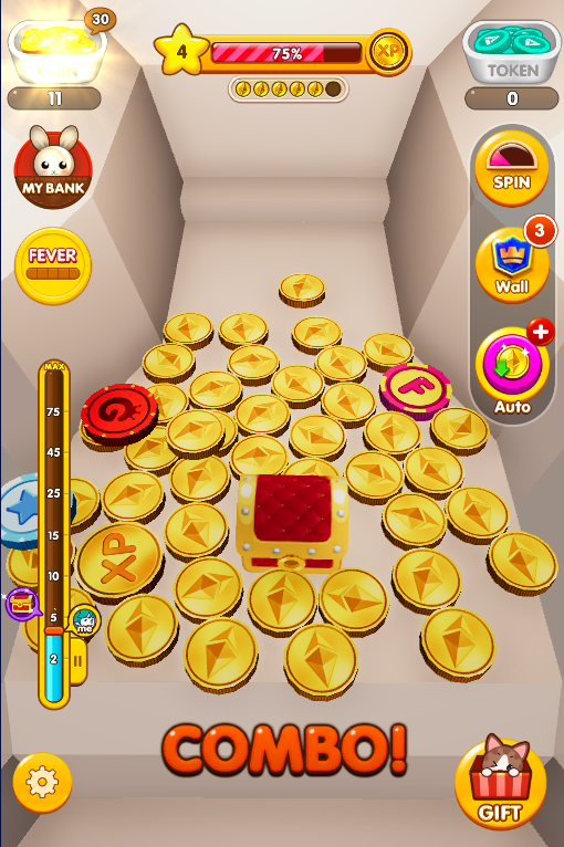 - 5枚Feverコインをもらった時、Fever Modeは自動的に起動します。すべてのコインは2倍コインになる