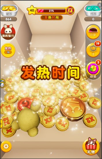 Fever Timeは10秒続いて、すべてのコインは2倍コインになり、クールダウンはなくてコインが落ち続きます。