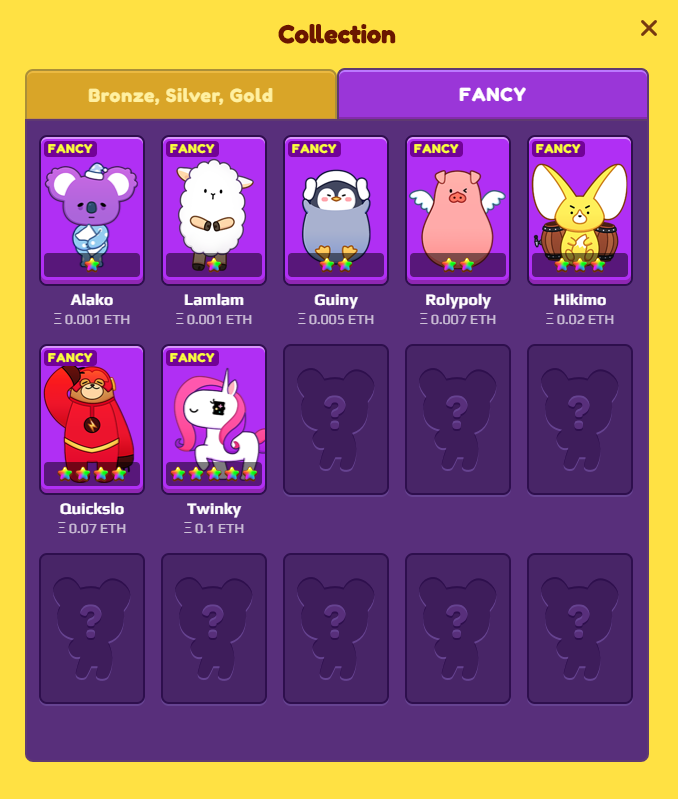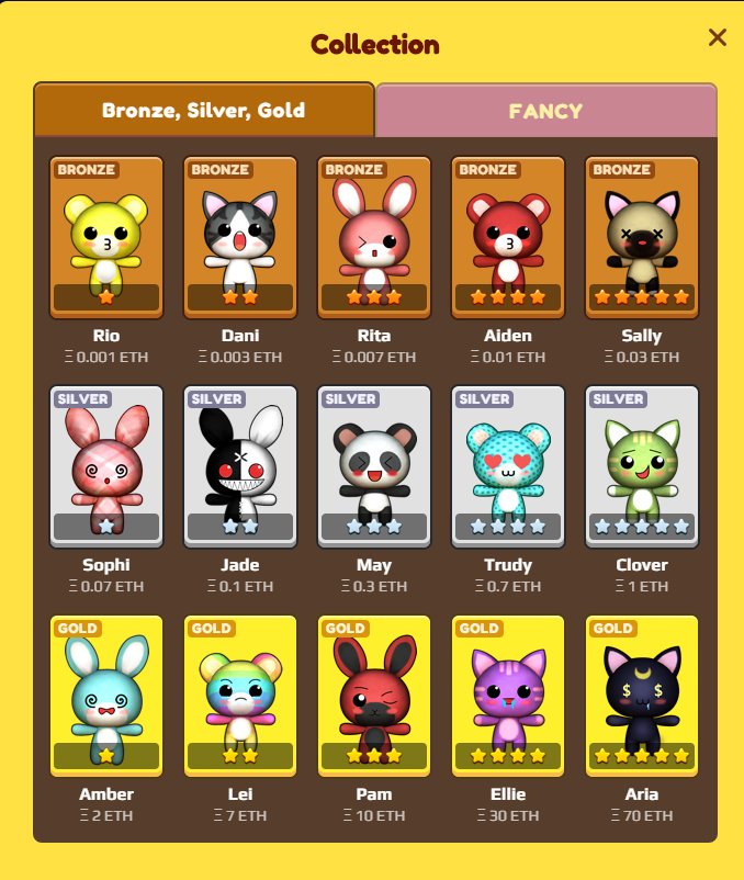 ドールは0.001ETHから数十ETHまで、各ドールは異なる価値があって、ランダムでコインプッシャーに落ちます。