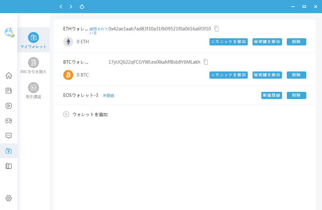 ここからは、ウォレットの作成例と詳細操作を見ていきます。