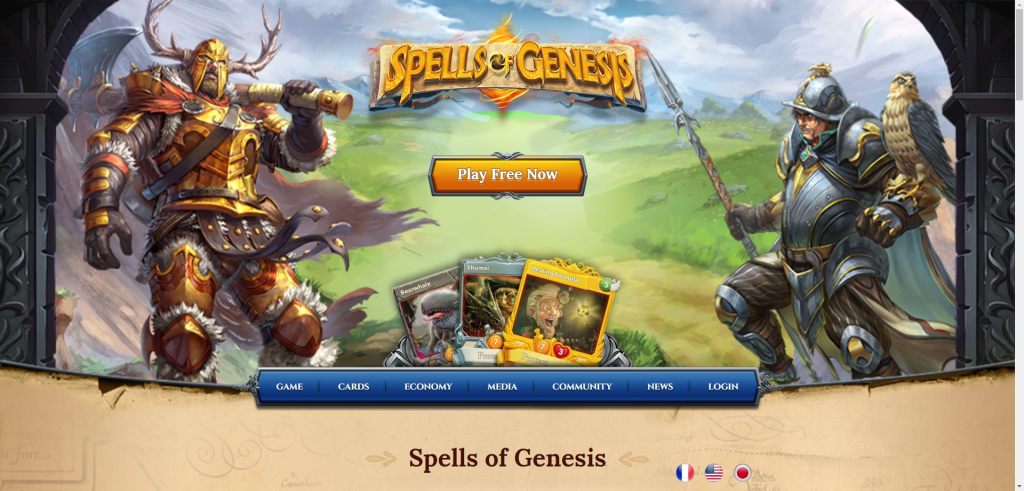 《Spells of Genesis》는TCG과 카드게임 그리고 아케이드 게임 요소를 결합하는 무료 모바일 게임이다. 이 게임은 블록체인 기술에 기반하고 블록체인도 스토리의 주요 아디어 출처이다. 구슬을 수집하고 거래하고 그리고 결합하고 함께 최고의 팀을 만들고 환상 세계를 탐색하면서 갖은 대수와 대결한다.