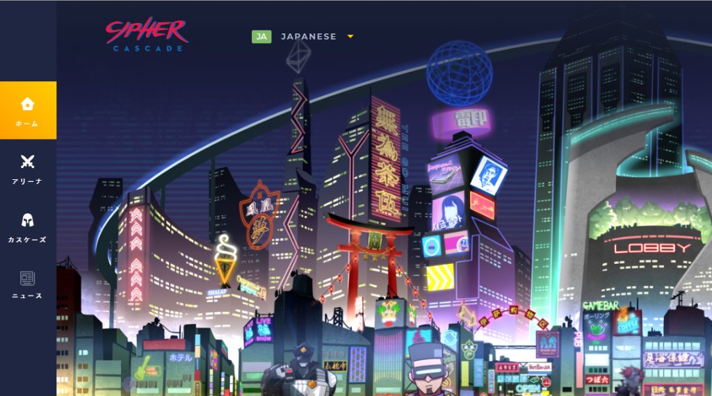 <Cipher Cascade> 공식 사이트에 들어가서 오른쪽 위에 있는ログイン를 클릭하세요.