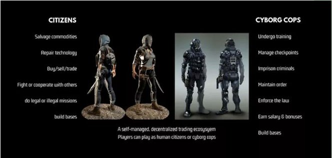 この遺棄された星で、プレイヤーは選べる身分は二つあります:公民とロボット警察です。最初は、プレイヤーが選べる身分は公民だけですが、ゲームの進度の発展と伴って、プレイヤーはロボット警察になって、地域の平和を守ることもできるらしいです。