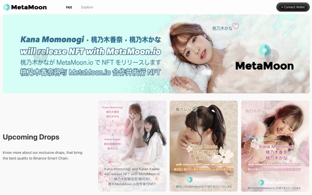 此前,MetaMoon还官宣了与女星 桃乃木枫花恋 的合作,将于本月末在MetaMoon平台发行写真NFT并登录纳斯达克大屏幕。
